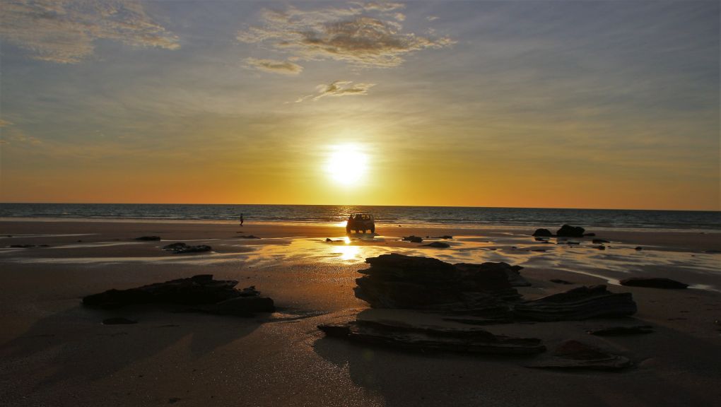 Setting sun on Camel Beach, Broome